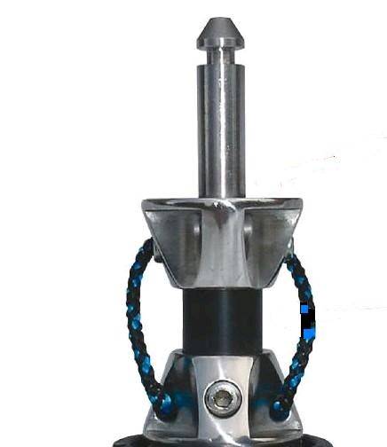 That has 3 parts, the whole top section is machined from one piece. Unlike the US cup system that has a plastic cup, with two buttons on a spring, bolted to a a little ally cup (and the bolt wears the hole out), then a tendon, then another little cup bolted to the base (again witht he bolt wearing the cup out), 2 washers, and piddly little bolts thru the tendon. The above one also has proper downhaul rope, not two bits of 1.5mm string, in case of tendon failure. Less bits = stronger.