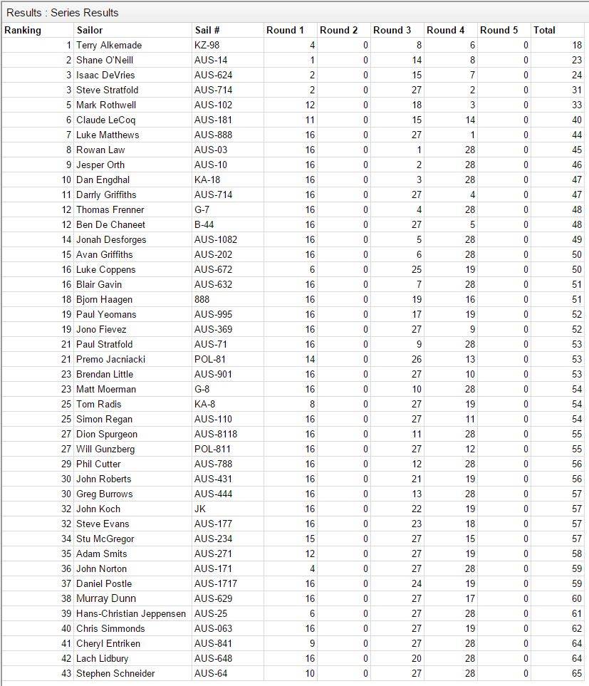 Congrats to all competitors as it was under very trying conditions.
