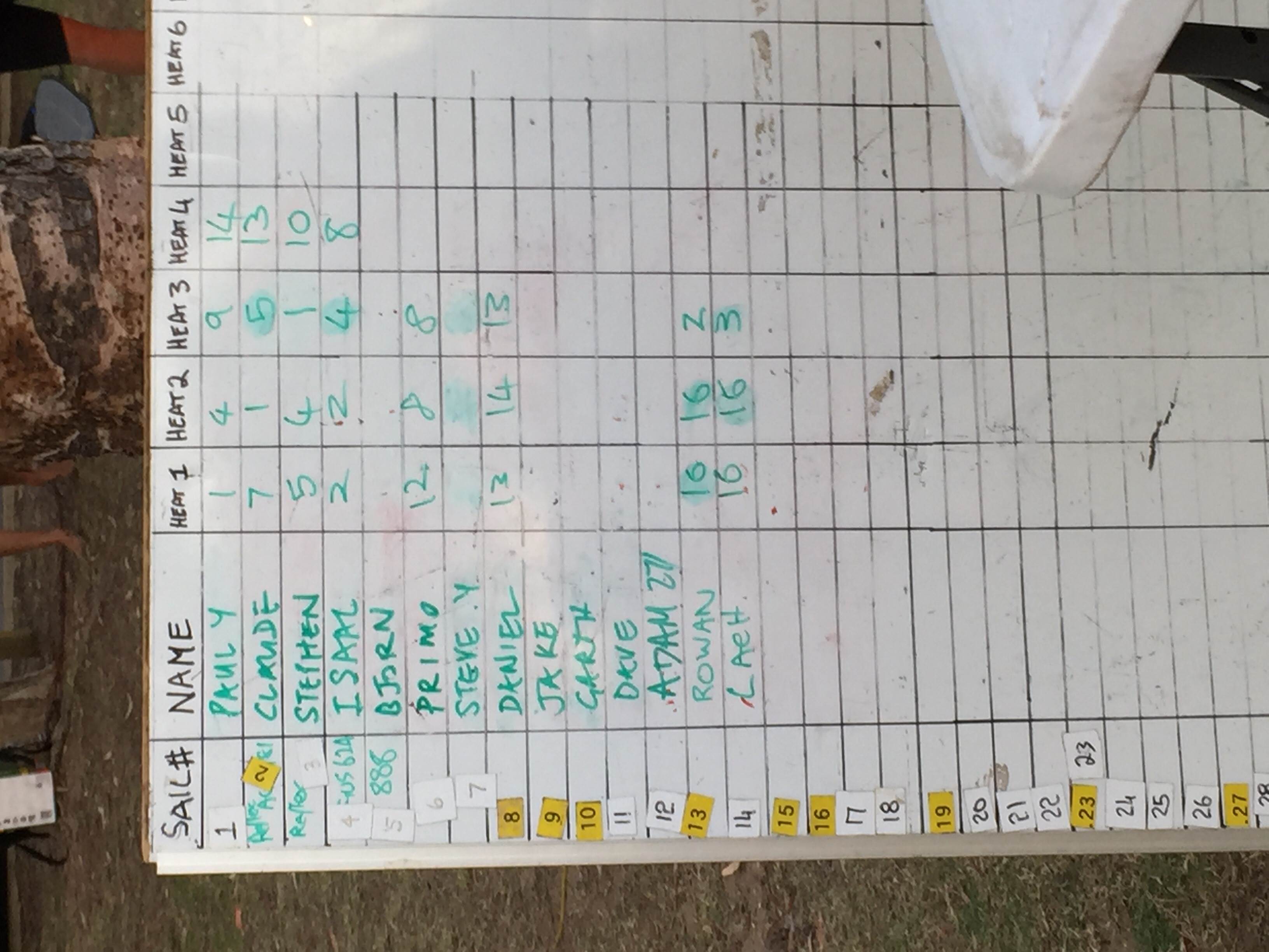We finally got some wind and managed to run 3 heats in 15-18 knots with 14 sailors. Thanks to Steve from Windforce for organising!