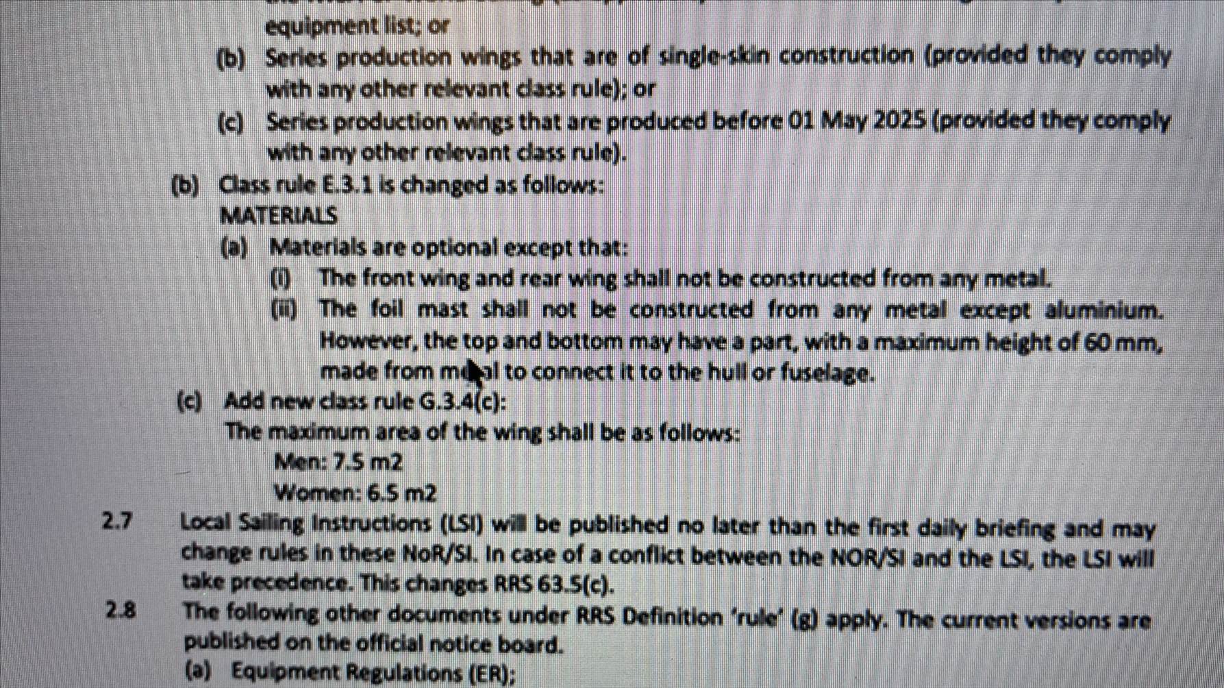 I just heard formula wing standards dropping max men's wing from 7.5m to intended 6.5m later this year.
